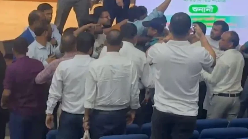 Clashes broke out during a hearing on the petitions regarding the redemarcation of parliamentary constituencies ahead of the 13th National Parliamentary Elections. The incident occurred at the Election Commission building in Agargaon around 12:45 pm on Sunday (24 August).