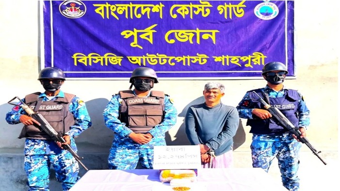 The Coast Guard has arrested Mujibur Rahman, the Chairman of St. Martin’s Union Parishad and President of the local Awami League, along with 12,274 yaba pills.